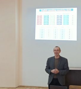 Студенты 11ба и 12ба групп приняли участие в увлекательном интеллектуальном состязании по различным темам: география, история, наука, литература, музыка, кино, спорт. Участники продемонстрировали глубокую эрудицию в области страноведения англоязычных стран, а также азарт и умение работать в команде.