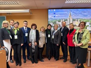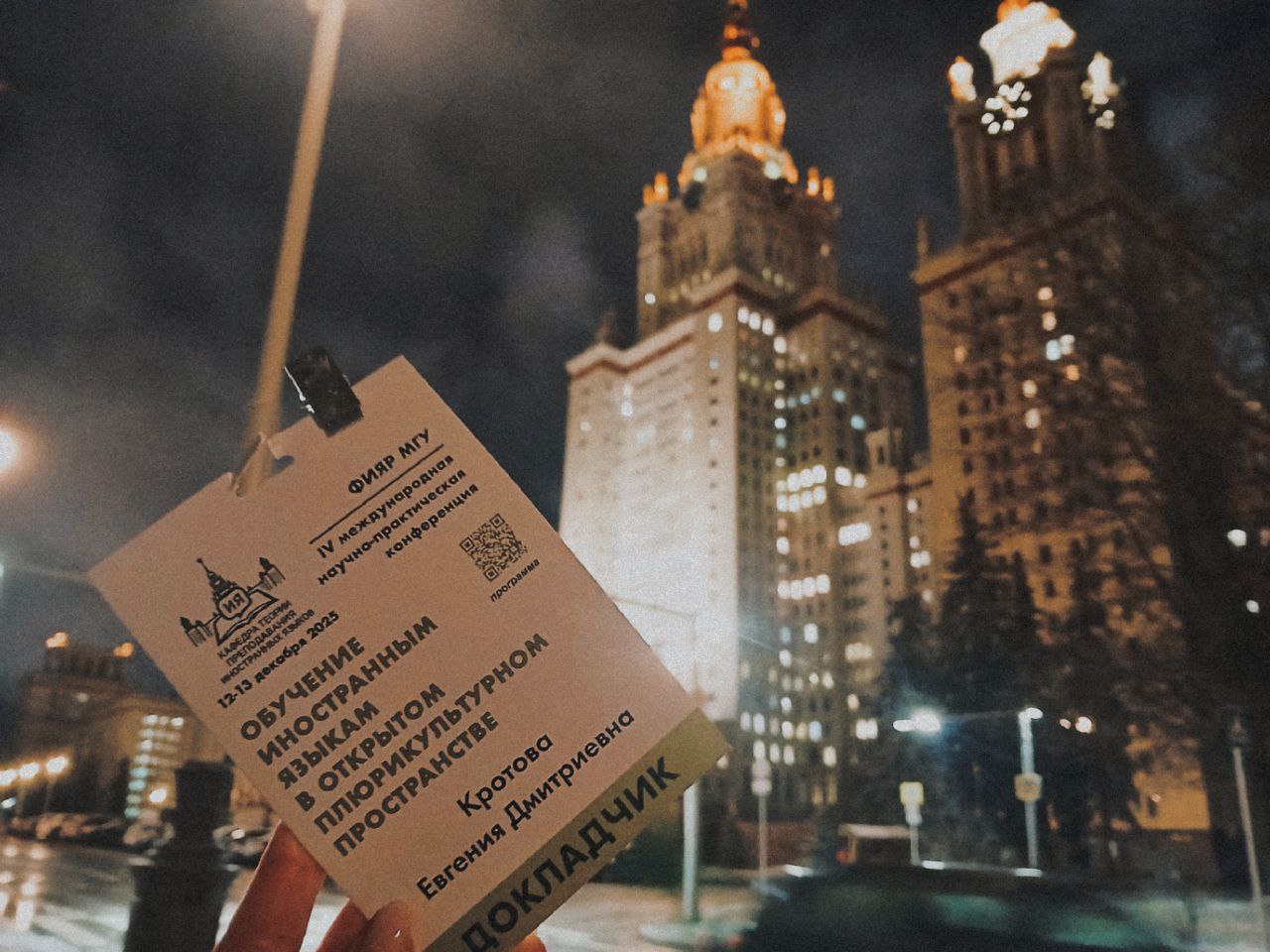 В период с 12 по 13 декабря студентка факультета иностранных языков Евгения Кротова, аспиранты Никита Катыков и Даниил Москаленко вместе с профессором Натальей Александровной Тарасюк приняли участие в IV международной научно-практической конференции «Обучение иностранным языкам в открытом плюрикультурном пространстве», которая проходила на базе факультета иностранных языков МГУ им.Ломоносова. Участники выступали с докладами, освещающими вопросы реализации аксиологической парадигмы иноязычного образования, теоретические и практические аспекты обучения иностранному языку для специальных целей, методические аспекты реализации обучения иностранному языку в профильных классах, особенности реализации интегративного подхода в процессе формирования личностных метапредметных результатов школьниках на занятиях по иностранному языку.